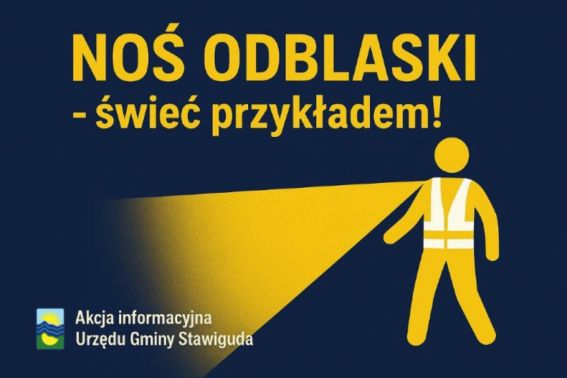 Urząd Gminy Stawiguda przypomina, że noszenie odblasków przez pieszych i rowerzystów po zmroku oraz przy ograniczonej widoczności znacząco poprawia bezpieczeństwo. Pieszy wyposażony w element odblaskowy jest widoczny nawet z odległości 150 metrów, natomiast bez odblasku – dopiero z około 30 metrów.