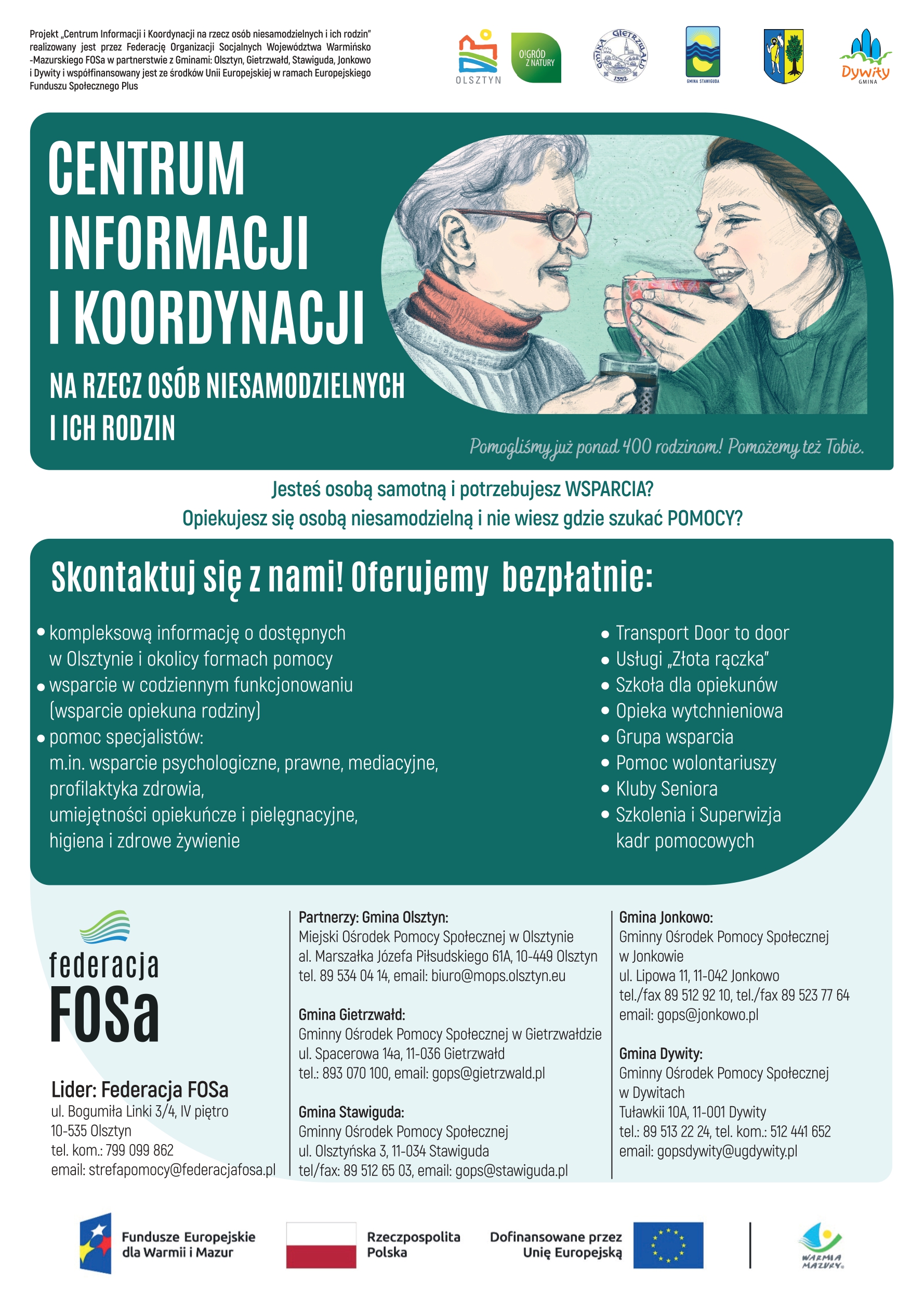 Federacja Organizacji Socjalnych Województwa Warmińsko-Mazurskiego FOSa, Miasto Olsztyn, Gmina Dywity , Gmina Jonkowo, Gmina Gietrzwałd