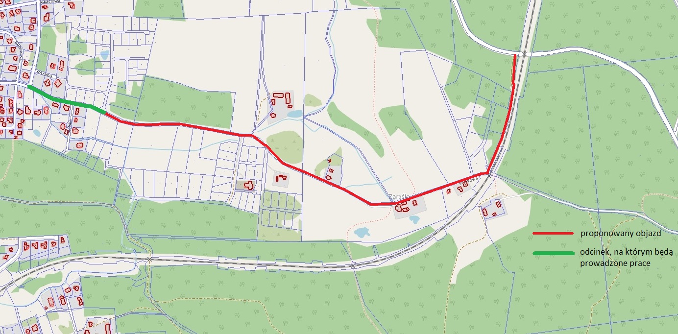 Na czas prowadzenia prac ruch zostanie skierowany objazdem przez ul. Piaskową do drogi powiatowej nr 1439N (trasa w kierunku miejscowości Łańsk). W godzinach popołudniowych przejazd będzie możliwy całą ul. Piaskową.
