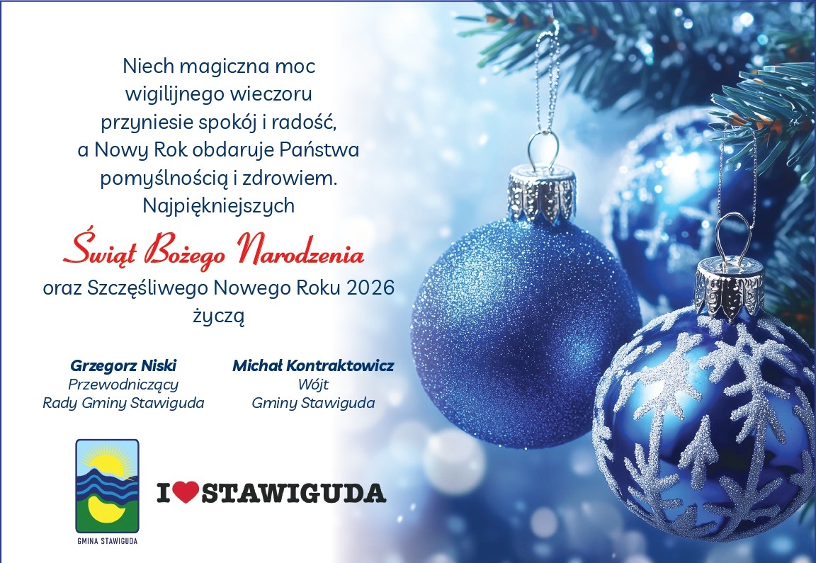 Życzenia Świąteczne od Wójta Gminy Stawiguda Michała Kontraktowicza oraz Grzegorza Niskiego Przewodniczącego Rady.