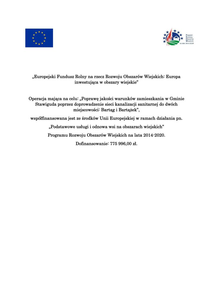Poprawa jakości warunków zamieszkania w Gminie Stawiguda poprzez doprowadzenie sieci kanalizacji sanitarnej do dwóch miejscowości Bartąg i Bartążek