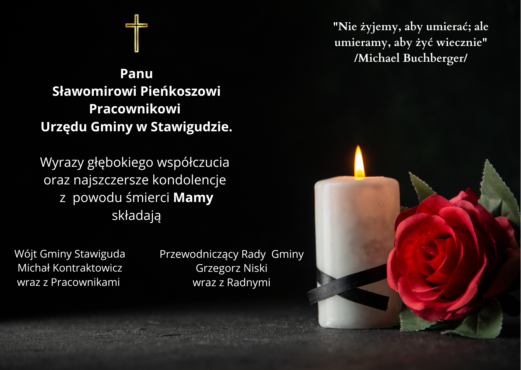Kondolencje Michał Kontraktowicz Wójt Gminy Stawiguda oraz Grzegorz Niski – przewodniczący Rady Gminy Stawiguda